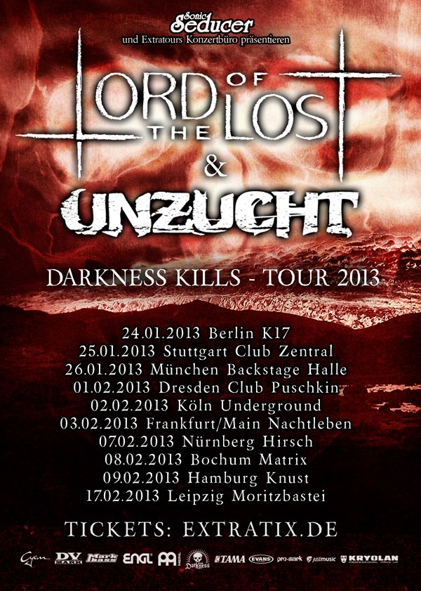 Und sie alle zusammen bilden zwei Bands, die man erleben muss. Ihre Musik macht Spaß, zieht mit und hüllt ein. Die Konzerte sind unvergessliche Erlebnisse, bei denen man lachen und weinen, abrocken und sich stumm ein Feuerzeug über den Kopf halten kann. UNZUCHT und LORD OF THE LOST wissen nicht nur, wie man Musik macht, sie wissen auch, wie man das Publikum anspricht und begeistert und sind trotz allem die sympathischen Jungs von nebenan, die nach dem Konzert noch für Fotos, Autogramme und ein Pläuschchen nach draußen kommen. Keine Spur von Arroganz oder schlechter Laune. Sie selbst bezeichnen sich gegenseitig als „Brüder“, was man beiden Formationen im Umgang miteinander anmerkt.
