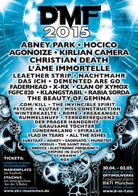 Vier Tage gute Laune, laute Musik, Top-Acts und jede Menge Schwarz! Bereits zum vierten Mal öffneten sich die Tore des Optimolgeländes für das Schwarzvolk und die Stampfer. In diesem Jahr hatte Veranstalter Mucky jedoch wegen des Maifeiertags um einen Tag verlängert. Bereits im Vorfeld wurden Zweifel laut, ob vier Tage nicht zu lang wären und man einen solchen Konzertmarathon meistern könne und wolle. Zur Überraschung vieler ist der Platz vor der Theaterfabrik am Donnerstag nur mit Autos zugestellt – und das sollte er auch bis Sonntag bleiben. 2015 gab es weder Markt noch Fressbuden und Bierbänke zwischen den Clubs, da die Stadt dem Veranstalter keine Genehmigung dafür erteilt hatte. Während des gesamtes Festivals ist aber genau der fehlende Markt immer wieder Thema unter den Besuchern. Zwar regnet es freitags und sonntags und man kann ohnehin nur die aufgestellten Sitzgelegenheiten unter dem Dach hinter der Fabrik nutzen, aber dort sitzt man abgeschieden, teilweise mit den Füßen in den großen Pfützen und sieht und hört nichts. Genau das machte aber im vergangenen Jahr das DMF aus: Man sah das bunte Treiben – trotz Regen! – konnte sich schnell einen Met oder gebratene Nudeln am Stand holen und auch mal die schmerzenden Füße ausstrecken, ohne dass man gleich alles verpasste.