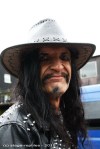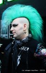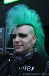 Wettertechnisch hat der Regengott diesmal kein Einsehen gehabt. Soll deren Schminke doch zerlaufen, mag er sich gedacht haben. Durchwachsenes Regenwetter war angesagt und die Meterologen hatten recht. Na gut … es hätte schlimmer kommen können. Teilweise tröpfelte es nur leicht oder war trocken, nur manchmal regnete es etwas stärker, so dass die teilweise doch sehr perfekten Kostüme ziemlich ramponiert wirkten. Da genehmigungstechnisch dieses Jahr keine Marktstände im Außenbereich zugelassen waren, fand der Schaulauf meistens nur auf dem direkten Wege zwischen Theaterfabrik und neben liegender Garage Deluxe statt. Für die frühen Gäste war das parkplatztechnisch gesehen dafür ein Gewinn. Das Auto musste nicht meilenweit entfernt geparkt werden, es war immer genügend Platz direkt auf dem Optimolgelände vorhanden. Das bunte Markttreiben, sonst eine wahre Bereicherung eines jeden Festivals, fehlte massiv. Die Vielfalt an Klamottenständen und Fressbuden war sonst der Treffpunkt abseits vom Konzertlärm. Die drei Stände, die im hinteren Teil der Theaterfabrik untergebracht waren, gingen an vielen einfach vorbei. Dementsprechend leer war’s da drin.
