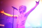 The Invincible Spirit sind bereits alte Haudegen in der Branche. Bereits 1986 gründete Thomas Lüdke das Projekt, das mit „Push“ auch gleich einen Mega-Hit vorweisen konnte. Aktuell ist außer Lüdke nur noch Lydya N. mit auf der großen Bühne der Theaterfabrik. Lydya steht etwas verloren ganz links außen am Halbhintergrund an ihren Keyboards, während Thomas Lüdke versucht, die Größe der Bühne auszunutzen. Bereits von Anfang an ist eine schlecht eingestellte Anlage zu vernehmen. Rückkopplungen und Übersteuerungen machen dem Sound zu einem guten Teil den Garaus. Das ist schade, denn eigentlich ist der Sound der beiden sehr gut hör- und tanzbar. Schon am Anfang fetzt den Gästen eine Coverversion des alten Mao Tse Tung Experience-Hits „Irregular Times“ um die Ohren, was die Laune sichtlich aufhellt und von den Klangproblemen etwas ablenkt. Schade, dass Lydya N. etwas schüchtern im Hintergrund steht und Lüdke die alleinige Show überlässt. Die leere Bühne in der Theaterfabrik ist leider zu groß für das Duo. In einer vollen Garage wären die beiden sicherlich besser aufgehoben gewesen. Da wären die Hits der beiden mit Sicherheit noch besser angekommen. Als wir die beiden sehr sympatischen Musiker anschließend in der Nachtkantine beim Essen trafen, war’s denen sichtlich peinlich, mit welchen Problemen sie auf der großen Bühne konfrontiert waren.