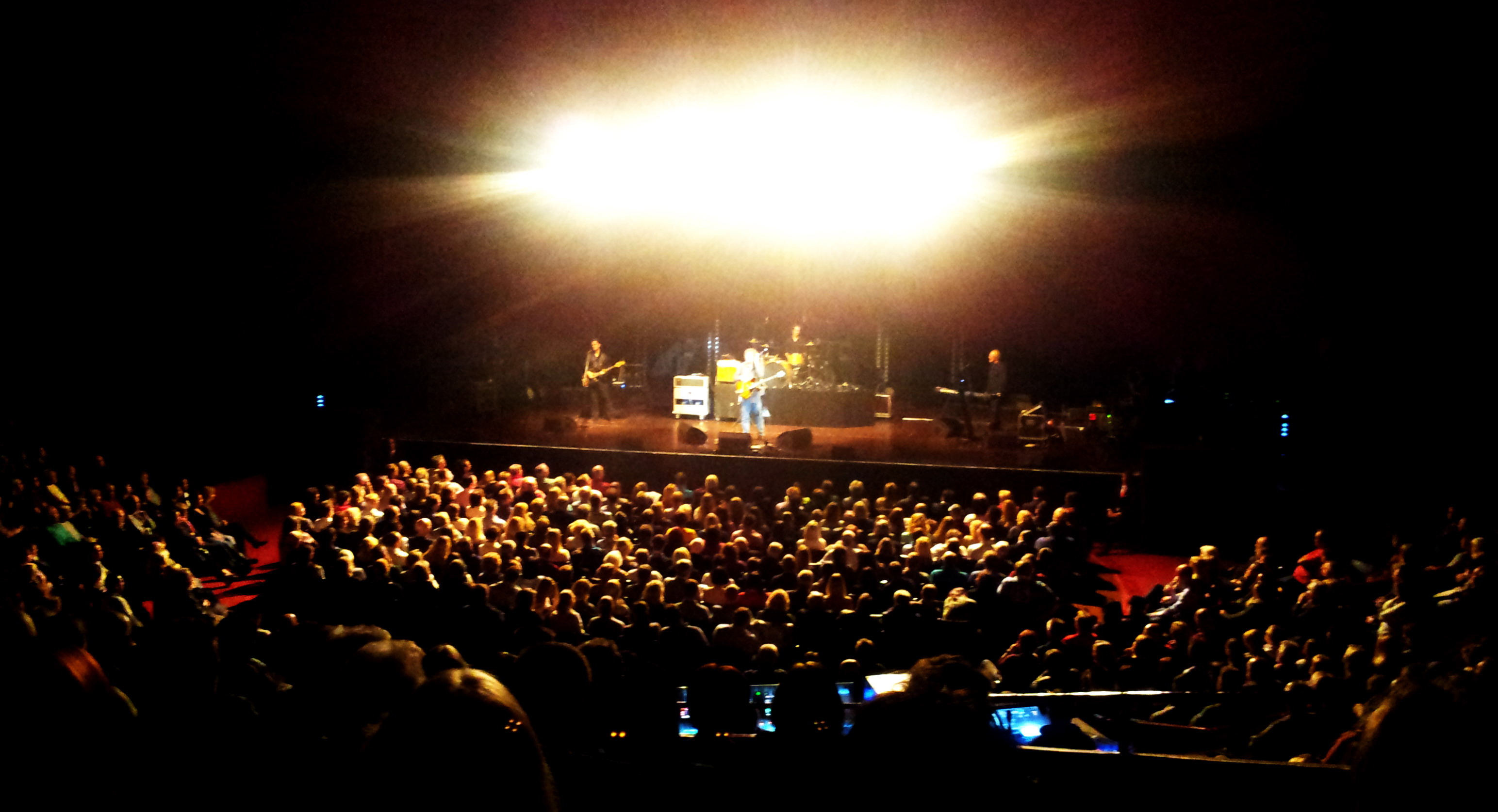 Zwischen den Songs wusste Cornelius immer wieder kleine Anekdoten einzuflechten … wie er zum Beispiel durch den Rolling Stones-Titel „Time is on my Side“ bestärkt wurde, selber Musiker zu werden. Während er das Riff zum genannten Titel durch die Halle schweben ließ, sprach er von den Veränderungen, die die heutigen Zeiten durchmachen würden, eben den Zeitsprüngen. „Welche Welt werden wir Keith Richards hinterlassen?“, lautete eine Anspielung auf die Unverwüstlichkeit des Stones Gitarristen. Zurück in seine musikalischen Anfangstage ging es mit dem Lied „Die Wolk’n“ von seinem ersten Soloalbum Hampelmann von 1973, bevor er mit „Selbstverwirklichung“, zu dem er sich mit der Mundharmonika begleitete, den riesigen Spagat zum kommenden Album machte. Mit „Weil des Geld ausgeht“ von 1990 und „Die unbequemen Freund'“ vom 80’er Erfolgsalbum Der Kaffee ist fertig ging es zurück ins vorige Jahrtausend.