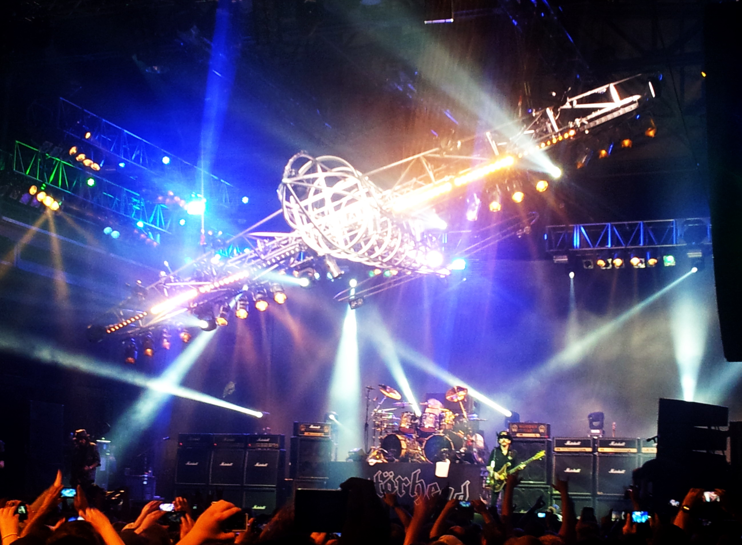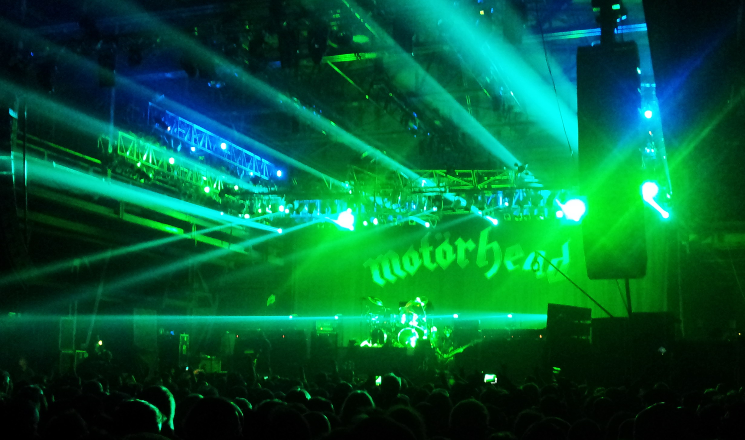 Natürlich weiß man, dass das Zenith nicht gerade den perfekten Sound hat und macht von vornherein Abstiche. Doch teilweise ist der Soundbrei eine einzige laute Masse, in der man sich fragt, warum Lemmy denn nicht singt? Er singt, man hört es nur nicht immer heraus. Der Beifall ist groß, die Halle feiert und muss leider bald feststellen: Die Sorge um Fronter Lemmy Kilmister scheint begründet zu sein. Er wirkt teilweise fahrig, schwach und hat stark abgenommen. Sein Rickenbacher schlachtet wie gewohnt die Riffs ab und schallt durch die Halle. Seine Stimme ist auch bei den Ansagen dünn, er nuschelt, wirkt schwach und kaum verstehbar. Die Soli von Philip „Wizzö“ Campbell und Mikkey Dee ziehen sich in die Länge, weil Lemmy anscheinend die Auszeiten dringend braucht. Was Lemmy über die Songs erzählt, entzieht sich meiner Kenntnis. Manchmal verstehe ich eine Jahreszahl, manchmal einen kurzen Fetzen seiner Ansage. Lemmy ist eher ein Schatten seiner selbst als der alte Rock’n’Roller von früher.