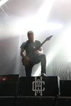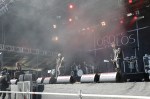 Das düster, futuristische Backdrop wird von Totenschädeln dominiert, die Zuschauer sammeln sich noch und der Platz könnte durchaus voller sein, als es mit den Klängen einer Akustikgitarre beginnt. Es kommt Feuerzeug-in-die-Luft-halte-Feeling auf, aber zu kurzum den Gedanken tatsächlich umzusetzen. Eine E-Gitarre setzt ein, los geht’s!