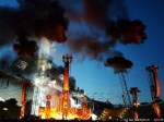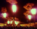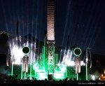 „Mein Teil“ von 2004, welches das Thema des Kannibalen von Rothenburg aufzeigt, wurde gefeiert und bei den ersten Klängen des Intros von „Du hast“ erreichte die Stimmung einen Höhepunkt. Was jetzt folgte, ließ einen zugleich frösteln und vor Hitze erschauern. Die Lightshow von Rammstein war ja immer schon von knalligen Farben und Kontrasten in Verbindung mit Flammen und Rauch bestimmt. Aber beim Refrain von „Du hast“ spuckten die Stahlmasten überall riesige Flammensäulen nach oben aus, so gewaltig, dass Hitzewellen das Stadion durchliefen. Wir standen ja fast ganz hinten und uns wurde ziemlich warm. Wie gewaltig musste die Hitze vorne drin sein? – Inmitten der ganzen Feuersäulen. Geht das noch zu toppen? Um es vorweg zu nehmen – es geht!