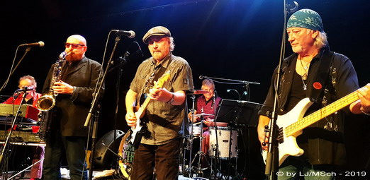 Bei Ankunft im Ampere stellte ich fest, dass der Club rammelvoll war und der Altersdurchschnitt wieder weit über 40 lag. Pünktlich um Acht ging das Licht aus und die Heroen betraten stürmisch umjubelt die Bühne. Ohne große Ansage ging es gleich los mit einem alten Hit der Spencer Davis Group … „Keep on running“, welcher natürlich voll angenommen wurde. Das Publikum war sofort auf Betriebstemperatur. Die Musiker kamen aus dem Dauergrinsen nicht mehr heraus, man merkte allen an, dass das hier ein Spaßprojekt ist und diese alten Freunde einander blind vertrauten. Besonders Zoot Money hinter seinen Keyboards war ein witziger Typ, der nonstop witzige Sprüche und Anekdoten zum Besten gab. Die Setlist war bestimmt von Hits der 60er Jahre.