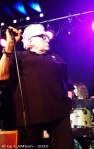 Aus dessen Feder stammte der folgende „Stormy Monday Blues“, bei dem Chris Farlowe einen komplett neuen Text improvisierte und immer wieder auf die Gitarren-Soloparts von Krissy Matthews abzielte. Die Mimik und Interaktion der beiden war sensationell und brachte die Leute zum Lachen. Überhaupt hatte Farlowe mit so mancher Aktion die Lacher auf seiner Seite. So unterhielt er sich mir Gert Lange angeregt über eine Wasserflasche, die auf der Bühne stand. Was denn der Mist solle, meinte er grummelig. Er hätte lieber ein kleines Pils. Mit „Hard to get along with“, „Sing the Blues for you“ und „Shaky Ground“ gab es einen Querschnitt durch bekannte Songs der HBB-Musikgeschichte. Am Ende von „Shaky Ground“ verließ Krissy Matthews die Bühne, als ob er dringend mal wohin müsste. Farlowe schaute irritiert als auch Gert, Reggie und Kev den Abgang machten und ihn allein auf der Stage ließen. Das gehörte allerdings zum Auftritt, denn Chris Farlowe performte jetzt alleine einen Song der grßsartigen Etta James. „The Rock“ in einer hinreißenden, zerbrechlichen a cappella Version. Anschließend kamen alle Musiker wieder auf die Bühne, um zum Abschluss des regulären Programms einen alten Kracher zu bringen. Farlowe sprach von seinem alten Freund Steve Marriott, welcher die folgende Nummer schon 1966 mit den Small Faces veröffentlicht hat, „All or nothing“, wo beinahe alle Leute begeistert mitsangen.