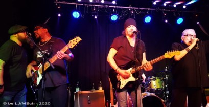 Das erste Set, welches stimmungsmäßig etwas verhalten rüberkam, und den zweiten Teil, der von der Energie und Ausstrahlung eines Chris Farlowes profitierte. Der Mann wird im Herbst 80 Jahre alt und zeigt locker so manchen Jungspund, was eine Harke ist. Der Schlagzeuger Kev Hickman spielt solide und einfach aber sehr präzise. Hickman wird sich laut Gert Lange den Platz hinter der Schießbude mit Eddie Filipp teilen. Das Bassspiel von Reggie Worthy ist im Gegensatz zum knackigen, trockenem Rockbass von Bexi Becker viel weicher. Reggie bringt mehr Funk in den Sound ein. Eine interessante Komponente im HBB Gefüge. Über allen steht Bandchef Gert Lange, der grinsend als letzte Instanz seinen Stars den Platz in der ersten Reihe bereitwillig und gern überlässt.