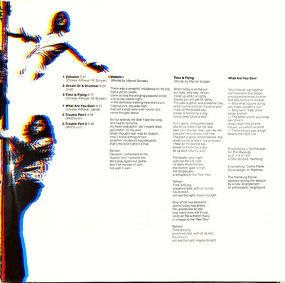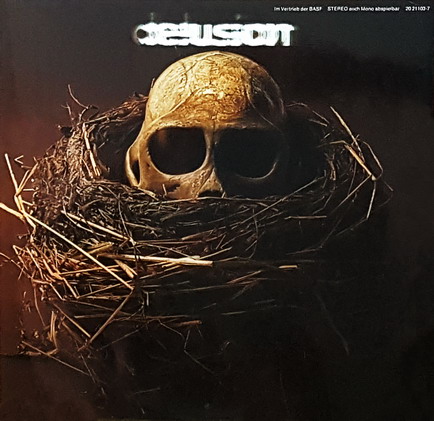 Das Klappcover wurde vom Photografen und Visual Arts Künstler Holger Matthies entworfen, der für die Deutsche Grammophon, Polydor, Philips einige bekannte Plattencover designed hat. Es zeigt einen Totenschädel auf schwarzem Grund, der über und über von herabtropfenden Wachs bedeckt ist, die Coverrückseite zeigt diesen Schädel, ohne Wachs, in einem Vogelnest liegend. Auf beiden Seiten noch der verschwommene Schriftzug „Delusion“, vorn drauf noch kleiner der Name und die Plattennummer, mehr ist nicht. Veröffentlicht wurde die Platte auf dem Pilz Label, dem Progressivelabel der BASF, mit der Nummer 20 21103-7 in einem Klappcover.