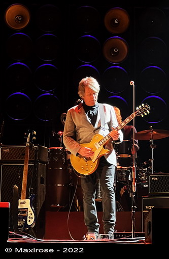 Wir sind angekommen im Jahr 68 und dem Weißen Album. Und es ging wieder mit einem George Song los. Die Jungs haben Geschmack. Der Gitarrenklassiker schlechthin „While My Guitar Gently Weeps“. Der Eric Clapton-Soloteil wurde von mir ungeduldig erwartet und ich wurde nicht enttäuscht. Tone und Gefühl waren wie im Original richtig gut! Der Leadgitarrist Jac Bico hat’s drauf. Es folgte „Ob La Di Ob La Da“. Hätte mir eher „Dear Prudence“ gewünscht, aber das Vok war begeistert und schunkelte mit. „Life Goes On“, weiter im Text. Denn jetzt ging’s ab. Der Kollege von „Oh Darling“ kam wieder zurück, die Bühne wurde rot erleuchtet und dann ging’s mit einem „Helter Skelter“ brutalst ab. Genau wie auf dem Album sehr hart gespielt mit brutalen Drums und kräftigem Bass. Die schwierigen Noten und auch den schreienden Ausklang hat er perfekt getroffen. Chapeau! Das Highlight des Abends. Auch die „Blisters On My Fingers“ wurden vom Bassisten van Poppel gebrüllt am Ende. Ein kleines Detail, das mich sehr gefreut hat.