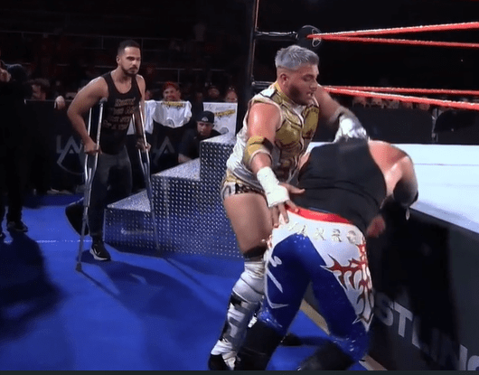 Ein paar Dinge fallen auf. Es ist das erste Match, in dem Mendoza nicht ständig den Sitz seiner Hose korrigiert oder sich durch die Haare fährt. Außerdem wirkt er noch muskulöser, als hätte er in den Wochen vor dieser Nacht in seinem Studio gelebt und nochmal ein paar Kilo Muskelmasse hinzugewonnen. Der Rücken und die Oberarme wirken noch stärker, definierter. Und Colon? Gefühlt habe ich ihn noch nie so gesehen. In seiner WWE-Zeit waren das eben bravere Matches, familienfreundlich. Er wirkt dennoch ein bisschen außer Form, ein bisschen schneller erschöpft, er ist auch älter, ja. Und es ist keinesfalls so, dass er das Opfer ist, das nur einsteckt, ganz im Gegenteil.