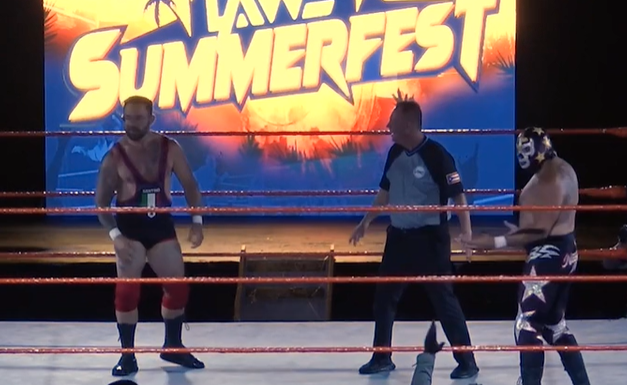 Auf LAWEonDemand gibt es nun ein kleines Zwischenspiel mit Mendoza und Bruno. Ersterer hat sich ja in den vergangenen Monaten eher Feinde als Freunde gemacht und da steht auch noch eine Storyline etwas offen. Geht glimpflich aus, nun ja, vor dem Combat Pit kann Mendoza schlecht noch eine auf’s Maul kriegen, das wäre ungünstig. Den Championstitel hat er auch nicht bekommen, sondern musste sich Pedro Portillo III und Santana gegenüber geschlagen geben. Zwischen diesen beiden sollte es eigentlich beim Summerfest den Battle um den Titel geben, doch Santana verletzte sich kurz vorher und es war klar, er würde nicht kämpfen können. Dafür versprach er eine Ankündigung für den Abend. Portillo war bereit, wie man es nur sein kann und heiß auf den Titel, das machte er oftmals und mit viel Wut deutlich. Am Summerfest humpelt Santana zum Ring, lässt sich feiern und ich würde ihm gerne diesen Titel einfach lassen, aber … das geht halt nicht. Er fällt über Wochen aus, Monate, da muss er den Titel freigeben, fraglich ist nur, ob Portillo den wirklich bekommt und gegen wen er dafür antreten muss.