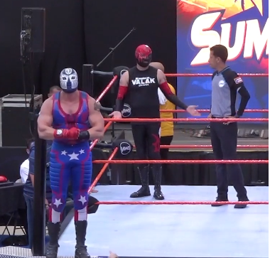 Den wohl kürzesten Kampf nicht nur des Summerfests boten Valak und Boricua Guerrero. Valak machte erst vor wenigen Wochen auf sich aufmerksam und Dennis Rivera deutlich, dass er den Namen wohl besser nicht mehr vergessen sollte. Dass er dabei ist, ist wirklich cool. Er lässt sich feiern und bekommt auch Applaus, nimmt den Mund vielleicht ein bisschen zu voll und wartet auf seinen Gegner – doch zuerst kommt zur mentalen Unterstützung Amandito Salgado, eine Wrestlinglegende. Übrigens sollte man nicht denken, dass Valak ein noch recht unerfahrener Jungspund ist, Lebenserfahrung hat er auf jeden Fall gesammelt bei der Army. Gegen ihn tritt an Boricua Guerrero, der sich noch kurz feiern lässt, als das Match bereits losgeht. Valak stürzt sich auf ihn, trommelt mit den Fäusten auf ihn ein, doch Guerrero ist erfahrener und stärker, es ist vorbei, bevor es überhaupt angefangen hat und man so richtig verstanden hat, was eigentlich los ist. Hat der Kampf überhaupt eine Minute gedauert? Ja, schade, aber erwartbar, soll ja auch erstmal nur die Stimmung anheizen und Valak wird noch erfolgreicher werden bei LAWE – hoffe ich.