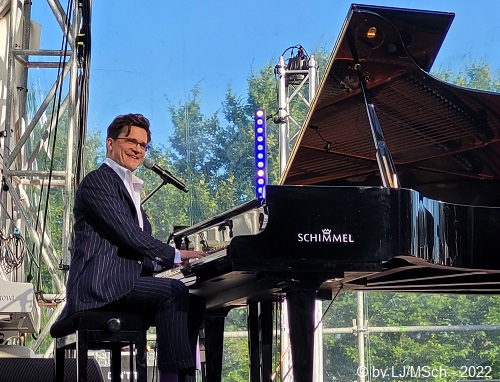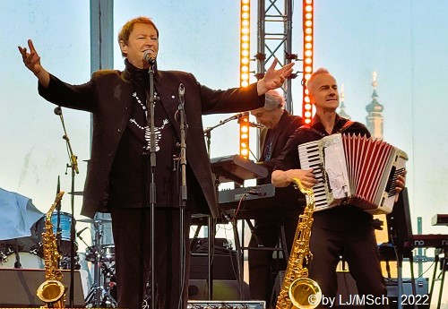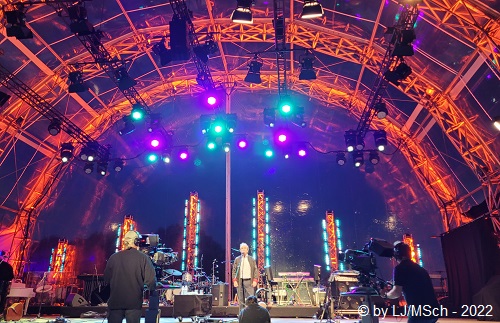 Als letzten Künstler sagte Bodo Wartke jetzt den Hubert von Goisern an. Bekannt wurde der Alpenrocker aus dem benachbarten Österreich durch seine Hits „Hiatamadl“ oder „Brenna tuats guad“. Die letzten Jahre aber verlegte Hubert seinen Schwerpunkt weg vom üblichen Alpenrock. Stattdessen fanden weltmusikalische Einflüsse aus seinen Reisen und Expeditionen durch Tibet oder Afrika den Weg in seine Musik. Nachdenklicher ist er geworden. Sehr viele wollten offensichtlich seine Hits hören … mir persönlich war der nachdenkliche von Goisern gar lieber als der Alpenrocker. Viel genug Anschub leistete seine grandiose Band. Unaufgeregt und druckvoll wurden auch leisere Melodien ins lautere Gewand gekleidet. Die Güteklasse der Musiker wurde zum Beispiel auch bestätigt, dass einige Musiker von Haindling mitten im Publikum standen und sich den Auftritt gönnten.