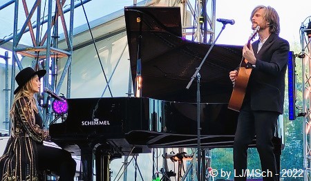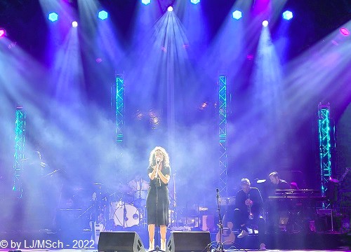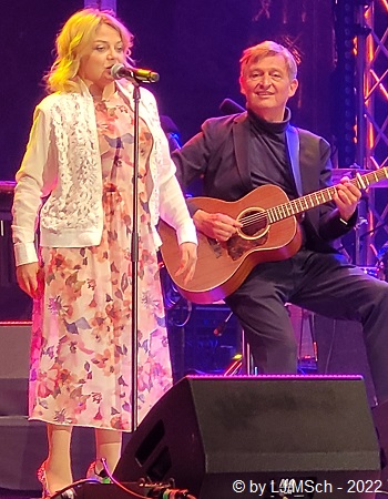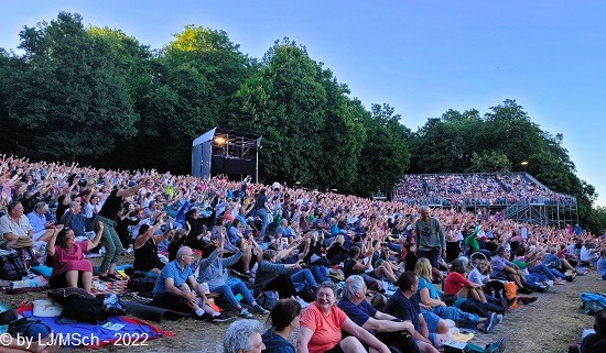 Anschließend fand eine circa 30 minütige Pause auf dem Programm. Als erster Act nach der Unterbrechung war Sarah Straub aus Ulm an der Reihe. Die studierte Psychologin mit Doktortitel stand in den letzten Jahren bereits mit sehr vielen Weltstars auf der gemeinsamen Bühne. James Blunt, Anastacia, The Hooters, Lionel Richie sind nicht gerade die schlechtesten Referenzen. Ein Pianist und ein Gitarrist begleiteten die junge Dame. Dann endlich … Wer kennt nicht Lieder wie „The Getaway“, „Don’t pay the Ferryman“ oder „Lady in Red“? Seit den Siebzigern ist der kleine Poet Chris DeBurgh auf den Bühnen der ganzen Welt zuhause. Seine Platten stehen allesamt in meinem Regal. Heute allerdings kam der irische Singer und Songwriter komplett auf das Wesentliche reduziert auf die Bühne. Ein Mann mit seiner 12-saitigen Gitarre. So wie er seine Lieder komponiert hatte, so wurden sie heute auch dargeboten. Wunderbar in intimer Stimmung stand der kleine Poet allein auf der großen Bühne, und füllte sie mit seinen traumhaften Melodien doch komplett aus. Bei seiner „Lady in Red“ flossen so gut wie alle Mädels auf der Wiese dahin, obwohl auch sehr viele Männer textsicher mitsangen. Der dritte Preisträger war jetzt an der Reihe. Max Prosa hieß der junge Kerl und ehrlich gesagt, hätte ich auf den komplett verzichten können. Ganze zwei Songs und ein Gedicht … und fertig. Das Ganze nicht einmal gut. Eigentlich überflüssig.
