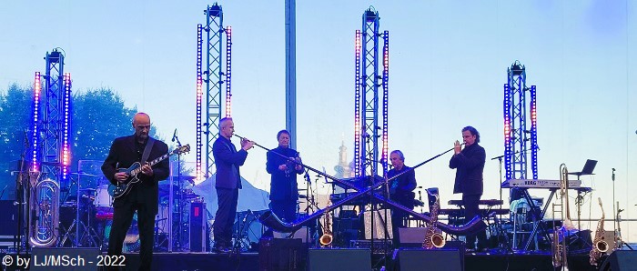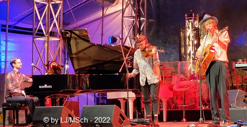 Als letzten Künstler sagte Bodo Wartke jetzt den Hubert von Goisern an. Bekannt wurde der Alpenrocker aus dem benachbarten Österreich durch seine Hits „Hiatamadl“ oder „Brenna tuats guad“. Die letzten Jahre aber verlegte Hubert seinen Schwerpunkt weg vom üblichen Alpenrock. Stattdessen fanden weltmusikalische Einflüsse aus seinen Reisen und Expeditionen durch Tibet oder Afrika den Weg in seine Musik. Nachdenklicher ist er geworden. Sehr viele wollten offensichtlich seine Hits hören … mir persönlich war der nachdenkliche von Goisern gar lieber als der Alpenrocker. Viel genug Anschub leistete seine grandiose Band. Unaufgeregt und druckvoll wurden auch leisere Melodien ins lautere Gewand gekleidet. Die Güteklasse der Musiker wurde zum Beispiel auch bestätigt, dass einige Musiker von Haindling mitten im Publikum standen und sich den Auftritt gönnten.