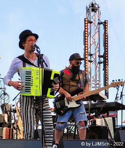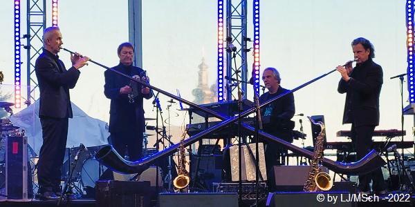 Auf den nächsten Act freute ich mich fast am meisten. Der bayrische Weltmusiker und Multiinstrumentalist Hans-Jürgen Buchner mit seiner Gruppe Haindling war dran. Der Schlagzeuger von Haindling, Peter Enderlein, ist seit gut 30 Jahren ein Spezl von mir, und ich hatte ihn noch nie live gesehen mit Haindling. Enderlein ist übrigens der einzige Musiker, der von Anfang an, also seit fast 40 Jahren dabei ist mit dem Buchner. Jetzt standen Profis auf der Bühne, das merkte man sofort bei den ersten Tönen. Das Ausfahren ihrer Teleskop-Alphörner brachte sofort ein Aha-Erlebnis beim Publikum. Buchners Musik kennt man aus zahlreichen Film- und Fernsehproduktionen und fast alles wurde in einem Medley zusammengefasst gespielt. Lediglich „Du Depp“ wurde von einigen vermisst.