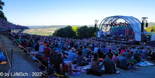Der Wetterbericht sagte Traumwetter an und wir trafen am Nachmittag des zweiten Tages am Kloster ein. Missmutig stellten wir fest, dass sich die Parkmöglichkeiten kilometerweit vom Kloster entfernt befanden: Am Straßenrand der einzigen Zufahrtstraße oder in einer Wiese, an der Feuerwehrler etwas missmutig ihren Dienst verrichteten. Also Fußmarsch von einigen Kilometern und das steil bergauf. Das Wort Shuttlebus scheint im tiefsten Franken noch nicht angekommen zu sein. Am Festivalgelände musste man erst einmal rund ums Gelände, um auf die Wiese zu gelangen. Dort war alles komplett entspannt. Die Security nahm ihre Aufgabe so gut wie gar nicht wahr, außer dass den Leuten ihre 1,5 Liter Plastikflaschen rigoros abgenommen wurden. Komischerweise saßen wir später neben Leuten, die einen vollen Picknickkorb mit Glasflaschen auf dem Gelände dabei hatten. Fast die gesamte Wiese war schon belegt, die Stimmung war locker entspannt. Eine Besonderheit an Banz ist, dass allen Künstlern genau gleichviel Zeit für ihren Auftritt zugeteilt wird, und zwar genau 30 Minuten. Höhepunkte für mich waren die Auftritte von Haindling, Chris DeBurgh und Hubert von Goisern.