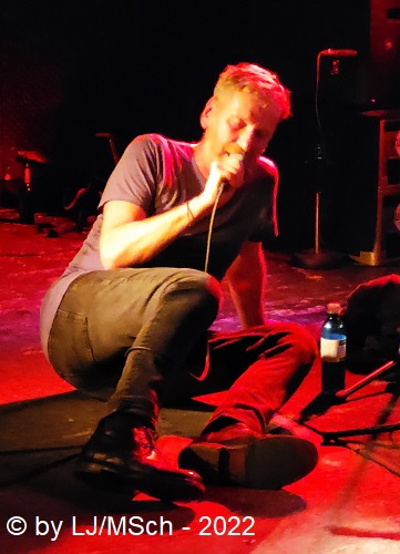 Zwischenzeitlich wurde der Termin mehrfach verschoben und auch die Location wechselte bis ins Nachtleben, einer kleinen Bar mit Liveclub im Keller. Jetzt endlich, nach fast zwei Jahren Warten war es soweit. Wir im kuschligen Nachtleben und die ersten Gäste trudelten ein. Schon nach ein paar Minuten lernten wir den Sänger Mattus kennen, der natürlich meine mitgebrachten Platten signieren durfte und sich ganz begeistert zeigte, dass wir beide extra aus München gekommen waren, um Der Moderne Man live zu sehen. Ich sagte ihm, dass ich unbedingt gern „meinen“ Song hören würde … „Anakonda“ … und er freute sich, mir mitteilen zu können, dass der heute Abend auf der Setlist stehen würde. Er stellte uns auch gleich Lars vor, ihren Schlagzeuger, da der ursprüngliche Drummer Felix Wolter krankheitsbedingt nicht dabei sein konnte. Da Lars aus dem Umfeld der Band stammt, kannte er das Material schon längst. Als dann Saitenschwinger Eckart Kurtz, besser bekannt als EKT eintrudelte, wurde der von Mattus sogleich aufgeklärt, dass da zwei Leute extra aus München angereist waren. Der Club vom Nachtleben wäre mit circa 280 Leuten gerammelt voll. Gut zur Hälfte gefüllt warteten Anhänger der Band auf den Start.