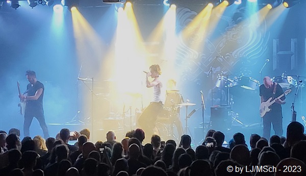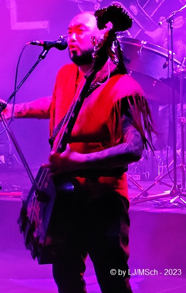 Los gings mit dem bisher unveröffentlichten Song „Huchu Zairan“, der einem schon merklich in die Gehörgänge fuhr. Zu ungewohnt und fremd, aber gleichzeitig urwüchsig und interessant klang das Ganze. Vom Debutalbum kamen dann der Titeltrack „The Gereg“ und „Shoog Shoog“ an die Reihe. Erstaunt stellten wir fest, wie relativ textsicher viele der Fans mitsangen, obwohl die Texte in mongolischer Sprache verfasst sind. Mit „Shishi Hutu“ und dem Song des neusten Videos „Bii Biyelgee“ wurde auch der aktuelle Longplayer Rumble of Thunder bedient, der auch der Name der Club-Tour ist. „The Great Chinggis Khaan“ vom Erstling wurde wieder verstärkt bejubelt, die Leute kennen den Song halt schon besser als zum Beispiel das folgende neue „Mother Nature“. The HU kamen in den Genuss, am Soundtrack des Computerspiels „Star Wars – Fallen Order“ mitarbeiten zu dürfen. „Eseerin Vasahina“ war darin einhalten und wurde jetzt performt und bejubelt. Immer wieder erklang in den kurzen Pausen zwischen den Songs das frenetische „Hu … Hu … Hu … Hu … Hu“ des Publikums. Die Stimmung im rappelvollen Werk war wirklich sensationell. Die nächsten drei Lieder stammen alle vom aktuellen Album Rumble of Thunder. „Tatar Warrior“, „Upright Destined Mongol“ und „Black Thunder“, welches auch wieder im Star Wars Spiel zu hören ist. Der Song, mit dem The HU die Musikwelt im Sturm eroberten und auch ihre erste Single war, „Yuve Yuve Yu“. Dieser wurde erwartungsgemäß extatisch abgefeiert. Man kann sich kaum vorstellen, dass da noch mehr geht, aber mit den beiden letzten Songs der regulären Setlist, „Wolf Totem“ und dem aktuellen „This is Mongol“ kletterte die Begeisterung auf den Gipfel. Gut 2.500 treue Anhänger bejubelten frenetisch die Band aus der fernen Mongolei.