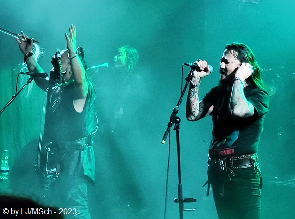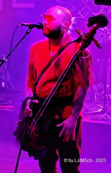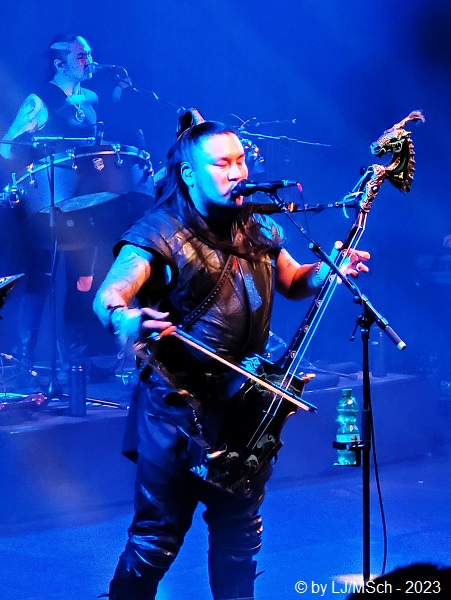 Im Jahre 2018 brachen archaische Klänge über die westliche Musikwelt herein. Kehlkopfgesänge, Ober- und Untertongesang in Verbindung mit asiatisch klingenden Saitenlauten. Das Ganze garniert mit kernigem Hardrock. The HU hieß die 2016 gegründete Formation, beheimatet in der mongolischen Hauptstadt Ulan-Bator. Ihren Musikstil bezeichnet das Quartett als Hunnu-Rock. Die Silbe „Hu“ bedeutet im mongolischen „Mensch“, „Hunnu“ ist die Bezeichnung für den Urstamm des mongolischen Volkes. Mit den veröffentlichten Videos zu „Yuve Yuve Yu“ und „Wolf Totem“ brachten The HU sich sehr schnell ins Bewusstsein der Rockfans. Das 2019 veröffentlichte Debutalbum The Gereg sorgte für weltweite Beachtung und enterte so manche Chartliste. Zwei Jahre später erschien das Nachfolgealbum Rumble of Thunder, rechtzeitig zur Tour, die The HU als Support der Schweden-Hardrocker Sabaton durch Europa führen sollte. Die Tour wurde auf 2023 verschoben, wodurch sich terminliche Probleme ergaben und The HU als Vorband nicht mehr in Frage kamen. Jetzt, im Sommer ’23 kamen die Mongolen für ganze vier Clubkonzerte nach Deutschland, die auch sehr bald ausverkauft waren. Unsere Tickets für Sabaton wurden zurückgegeben, wir wären nur wegen The HU hingegangen, und stattdessen Karten für das Münchner Konzert im Backstage-Werk geordert. Akustisch eh viel besser als das unsägliche Zenith im Münchner Norden.