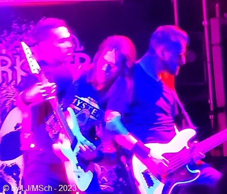Um 21:00 Uhr wars aber dann soweit. Aus Nebelschwaden tauchten fünf Musiker auf, der Meister zuletzt und sie legten gleich los wie die Feuerwehr.