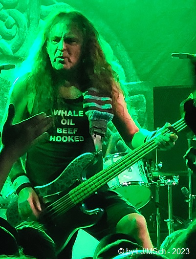 Was macht man als Musiker, wenn man mit seiner Stammband seit 37 Jahren fast immer den gleichen Sound spielen muss und relativ wenig Spielraum für Ausflüge in andere Genres bleibt? Ganz einfach – man gründet ein Nebenprojekt, in welchem man seine anderen Vorlieben verwirklichen kann. Iron Maiden kennt ja vermutlich jeder Rockfan auf dem Globus. Das einzige noch vorhandene Gründungsmitglied Steve Harris an den vier dicken Saiten ebenso. Als Mitbegründer einer ganzen Musikströmung, der New Wave of British Heavy Metal war es ja schon verwunderlich, dass Maiden im Jahr 2000, dem Jahr der Wiedervereinigung mit Sänger Bruce Dickinson ihren Stil etwas ins Progressivere wandelten. Längere Tracks, nicht weniger gut als die alten Kracher. Mit den Jahren wollte Steve Harris aber auch mal kurze, kernige Hardrock Songs zum Besten geben, was aber nicht mehr so ganz ins Maiden Repertoire passte. Also mal kurzerhand eine Soloscheibe rausgebracht, als British Lion betitelt und als Projekt mit Bandcharakter beschrieben. 2020 folgte dann der zweite Streich mit Namen The Burning. Als ich dann vor ein paar Monaten mitbekam, dass British Lion im Backstage live spielen würden, wurden auch sogleich Tickets geordert. Sonst spielt der gute Steve ja vor riesigen Menschenmassen und jetzt in der kleinen Backstage Halle vor grad mal 400 Leuten. Klang vielversprechend und sehr nach Fan-Nähe. Für Steve war dieses letzte Konzert der kleinen Summer Tour 2023 praktisch ein Vorgeplänkel, das Warm-Up zur Iron Maiden Show am drauffolgenden Abend in der ausverkauften Olympiahalle.