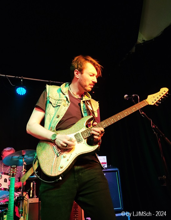 An den Drums, etwas versteckt, sitzt Eddie Filip. Für mich ein komplett neues Gesicht, aber was soll man sagen? Wer bei den Blues Brothers aus Hamburg auf der Bühne steht, hat sich seine Sporen verdient und weiß, wie er mit seinem Instrument umzugehen hat. Filip, der auch schon für Inga Rumpf, Hannes Wader oder Alex Conti getroommelt hat, bearbeitet seine Felle und legt irgendwann ein klasse Solo hin, das auf jeder großen Bühne Platz hätte.