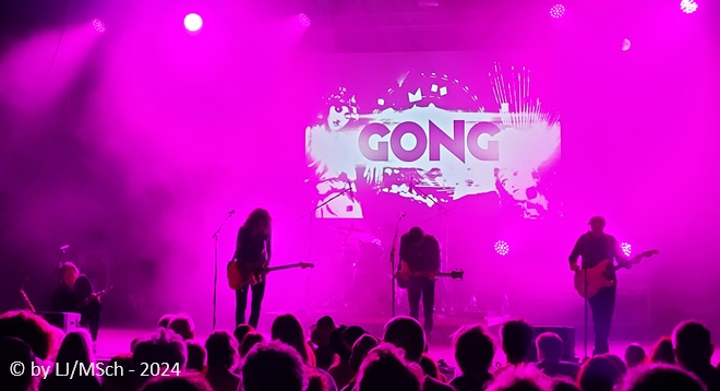 Da das Woodstock Forever Festival zwei große Bühnen hatte, die Scheunenbühne und die Waldbühne waren natürlich die Umbaupausen auf Null herabgesetzt. Wir wanderten also gute 100 Meter weiter zur Waldbühne und warteten auf die Musiker von Gong, die seit dem Tod von Dævid Allen aus Kavus Torabi, Dave Sturt, Fabio Golfetti, Ian East und Cheb Nettles bestehen. Das Set begann und meine Skepsis löste sich alsbald in Luft auf. Was dieses Quintett da auf die Bühne zauberte, war aller Ehren wert. Das klang sensationell gut, Allen und Hillage wurden in keiner Weise musikalisch vermisst. Gut 95 Minuten brannten die fünf ein musikalisches Feuerwerk ab, welches die Leute begeisterte. (Galeriebilder anklicken)