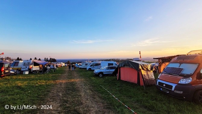 Der letzte Absatz soll jetzt allgemein dem Festival Woodstock Forever an sich gelten. Von weitem sah man bei der Anfahrt schon aus zig Kilometer Entfernung den Campground und ich dachte mir, dass das bestimmt ein Chaos werden würde. Wer veranstaltet auch ein großes Festival über mehrere Tage mitten in der Thüringischen Pampa, wo sich Fuchs und Hase Gute Nacht wünschen, und man eigentlich nicht mal tot übern Gartenzaun hängen möchte? Tja … ich wurde eines besseren belehrt. Schon bei der Ankunft am Ground merkte ich eine komplett gelöste und entspannte Stimmung, die sich eigentlich durch die kompletten Tage durchziehen sollte. Das Gelände vom Feriendorf Auenland eignet sich perfekt für ein solches Event. Die komplette Security Truppe war sehr freundlich und locker drauf. Die Tausenden von Hippies sowieso – Vom Klientel her sind das eh diejenigen, die absolut keinen Bock auf irgendwelchen Stress haben. Die Lösung mit den verschiedenen Bühnen war perfekt, die Umbaupausen gleich Null und die Entfernung in fünf Minuten easy zu bewältigen. Auch die Anordnung der Fressmeile und der Händlergasse war sehr gut gelöst. Sehr positiv ist uns die Müllsituation aufgefallen. Der ganze Platz war sehr sauber, nirgends lag Müll herum. Dem Veranstalter kann ich nur ein riesiges Kompliment aussprechen, mit welcher Souveränität er ein solch großes Event seit einigen Jahren auf die Beine stellt. Für mich eines der schönsten Festivals, das ich je besucht habe. Persönlich gabs für mich nur drei Negativpunkte an dieser Tour. 1) Die gesperrte Straße zum Hotel die einen langen Umweg vonnöten machte, aber dafür kann der Veranstalter nichts. 2) Der für mich schlechteste Auftritt der Hamburg Blues Band bisher. 3) Diese bodenlose Frechheit am Pizza Tank Stand der Berliner durch diesen unmöglichen nervigen Blondschopf. Alles andere war TOP! Danke.