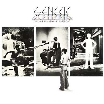 Wir befinden uns in der Mitte des Jahres 1974. Progressivrock war eigentlich gegenüber dem aktuellen Musikgeschmack auf dem absteigenden Ast. Die Soul- und Funkmusik von Gruppen wie War, Earth Wind and Fire oder Kool and The Gang , Glamrock von The Sweet, Slade oder Mott The Hoople, der aufkommende Pubrock a la Rubettes und Mud befanden sich musikgeschichtlich auf der Überholspur. Aus Amerika schwappte der Beginn der Discowelle nach Europa rüber, der Sound von Hardrockbands wie Deep Purple, Black Sabbath oder Uriah Heep verwässerte langsam. Dem Gegenüber standen Prog-Dinosaurier wie King Crimson, Yes oder eben Genesis, die sich den aktuellen Strömungen verweigerten und ihrem Sound treu blieben. Die Mannen um Peter Gabriel und Co hatten Anfang ’74 noch einen kleineren Single-Hit mit „I know what I like“ vom letzten Album Selling England by the Pound am Start, als es ans Erschaffen der neuen Platte ging. Intern war einiges an Spannungen in der Band spürbar. Unter anderem zwischen Gabriel und Rutherford über die Thematik des neuen Albums. Während Mike Rutherford lieber Der kleine Prinz, die Romanfigur von Antoine de Saint-Exupéry vertonen wollte, bestand Peter Gabriel auf der von ihm erdachten Konzept-Story über Rael, einem kleinen Puerto-Ricanischen Jungen auf einer surrealen Traumreise durch New York mit all seinen fantastischen Abenteuern. Gabriels Idee setzte sich durch, aber intern knirschte es gewaltig. Regisseur William Friedkin wollte Peter Gabriel für sein neues Filmprojekt verpflichten, in der Öffentlichkeit wurde die Band immer mehr als Peter Gabriel und seine Band wahrgenommen, zu sehr stand der Sänger auch durch seine exzentrischen Bühnen-Verkleidungen allein im Rampenlicht. Dazu kam es, noch vor dem Beginn der Aufnahmen zu Komplikationen bei der Geburt von Gabriels erster Tochter. Die anderen Bandkollegen hatten keine Kinder und konnten deshalb Gabriels Sorgen nicht nachvollziehen, mehr Zeit mit seiner Familie verbringen zu wollen, anstatt sich verstärkt der Band zu widmen. In dieser Zeit der Entzweiung von der Band reifte im Sänger der Entschluss, Genesis nach dem neuen Album zu verlassen, teilweise wollte er sogar ganz aus dem Musikbusiness aussteigen. Im Sommer 1974 begannen die Aufnahmen zu The Lamb lies down on Broadway. Der mobile Ableger des Manor Studios von Virgin Records Gründer Richard Branson fand sich im walisischen Swansea ein und es konnte losgehen. Das Gesamtkonzept und die Texte stammen von Peter Gabriel, der Rest der Band komponierte den Großteil der Musik. Nun denn – begleiten wir Rael auf seiner Reise …